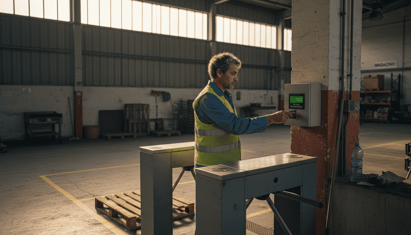 Scopri come il controllo accessi industriale riduce furti del 25% e sprechi del 30%. Guida completa a benefici, tecnologie e implementazione per aziende manifatturiere.